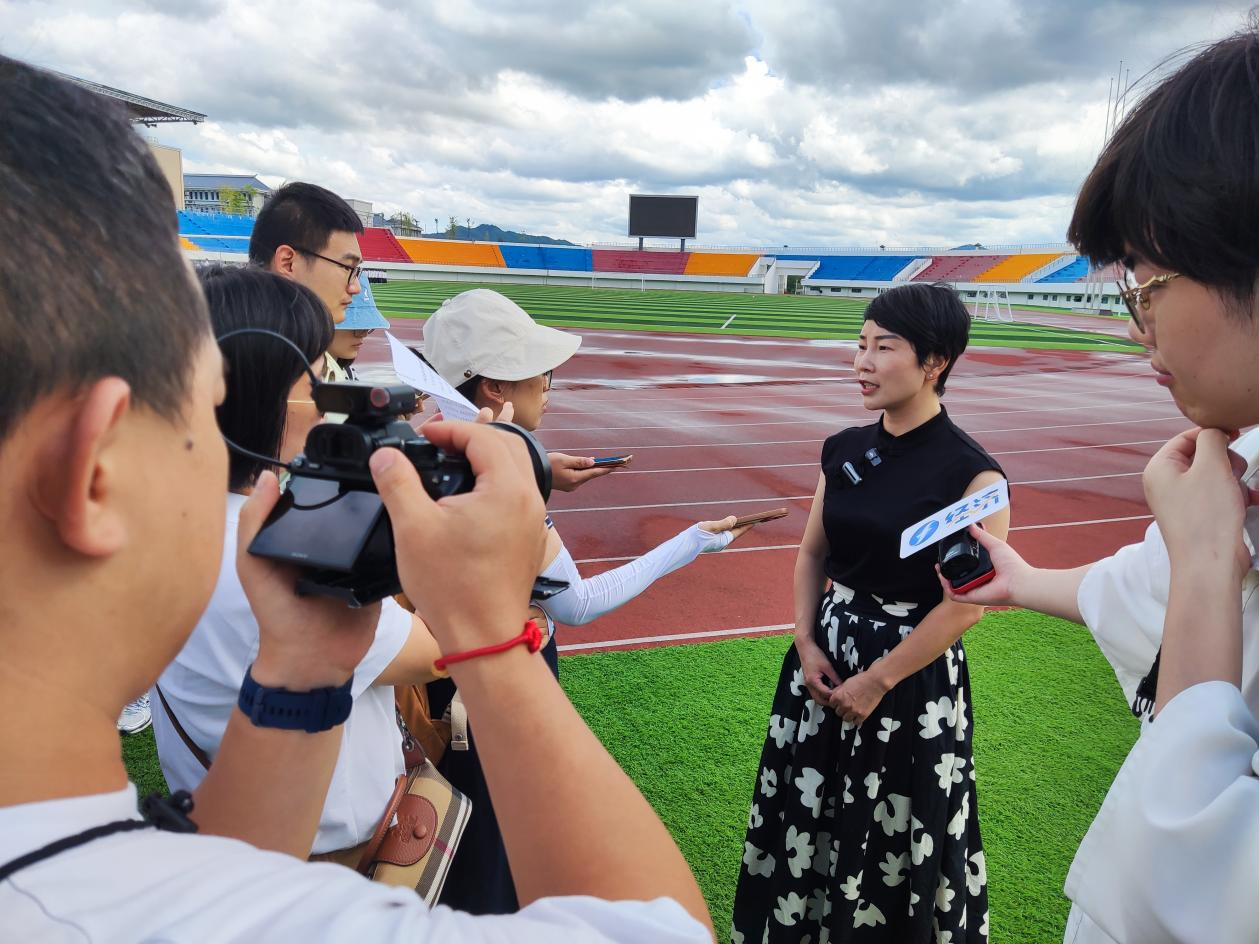 “长汀县体育中心的建设中,体彩公益金的投入是多少,主要用于哪些方面?”“万人体育场建成后,对你们有哪些改变?”……31号下午,在彩票公益金资助项目——长汀县体育中心,一场特别的实地采访活动如火如荼进行着,参加“走进福建体彩 见证公益力量”公益行活动的中央媒体和省级媒体记者们受邀担任指导老师,现场和学员们共同采访、共同提问,让学员们在实训实操中提升实践能力,在交流互学增强媒介素养。