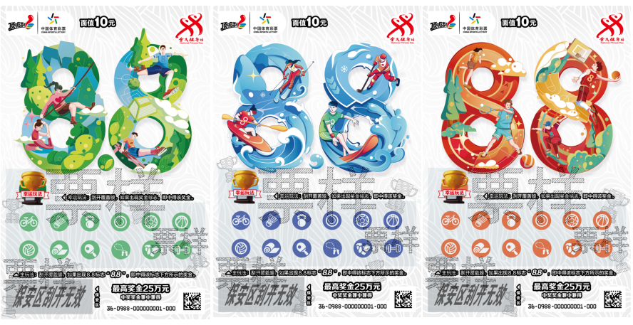 随着公众对健康生活与科学运动的需求日益提升,加之对8月8日“全民健身日”的关注度提升,全民参与健身的热情持续高涨,“全民健身 我来啦Ⅲ”即开票应势推出,包含3个票面场景,将各场景下的流行运动元素巧妙融入“88”字样设计中,通过活力、动感的运动场景呈现,让全民健身的氛围愈发浓厚。