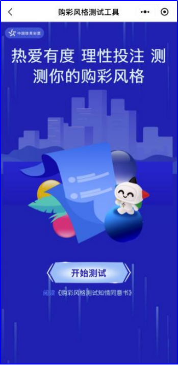 场景二:购彩风格测试。想知道自己是什么购彩风格?“理智型”?还是“易冲动”?扫码测测,专属你的小建议。快速了解自己的购彩风格。它能帮助你很快了解自身购彩习惯,更好地规划购彩节奏。