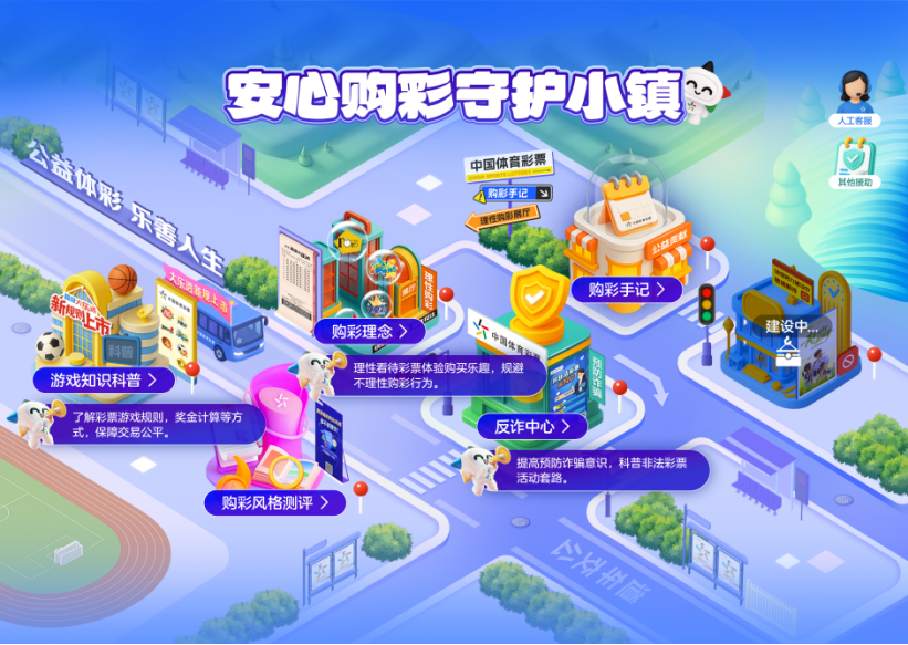 目前,“安心购彩守护小镇”已完成核心场景搭建,后续还将持续更新内容、上线更多趣味实用的场景,不断丰富平台功能,与广大购彩者一起见证“小镇”的成长与升级。