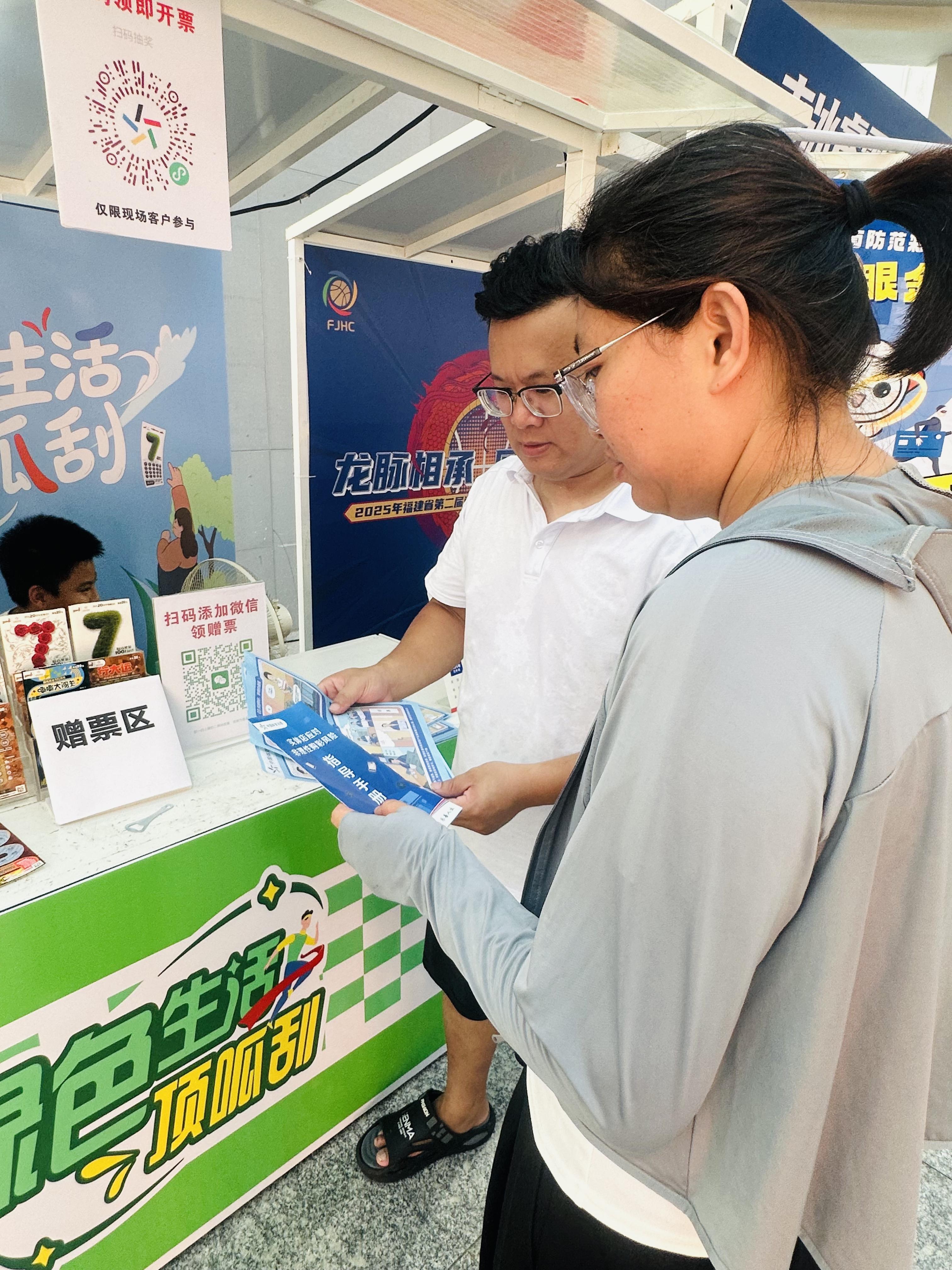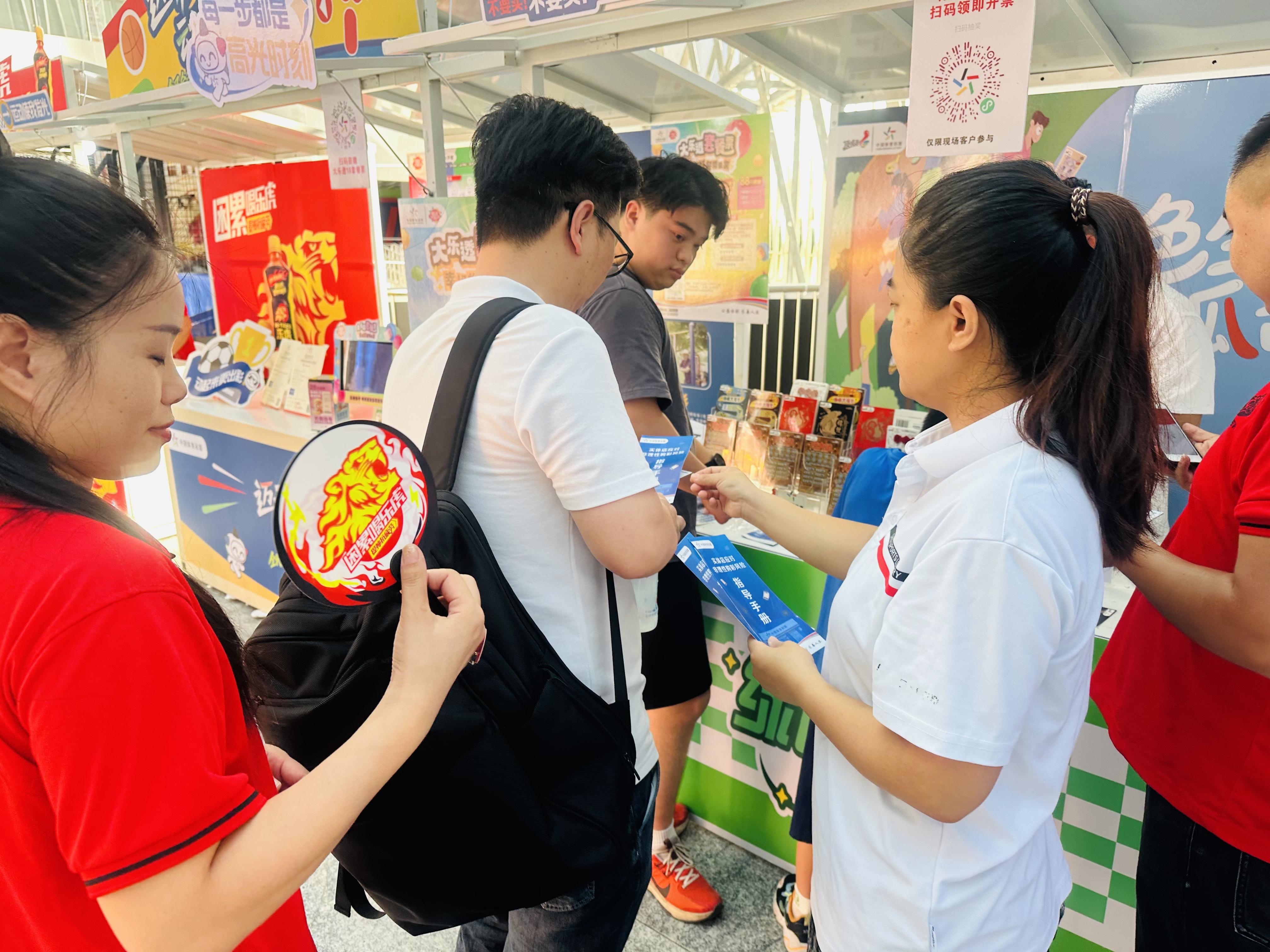 厦门体彩中心深度参与此次盛会,在赛场边设立了别具特色的中国体育彩票互动展区。球迷们扫码即可获赠价值18元的体彩超级大乐透套餐票及顶呱刮即开票,为观赛增添一份幸运期待,亲身体验体彩的乐趣与公益魅力。展区前人流如织,热情高涨。