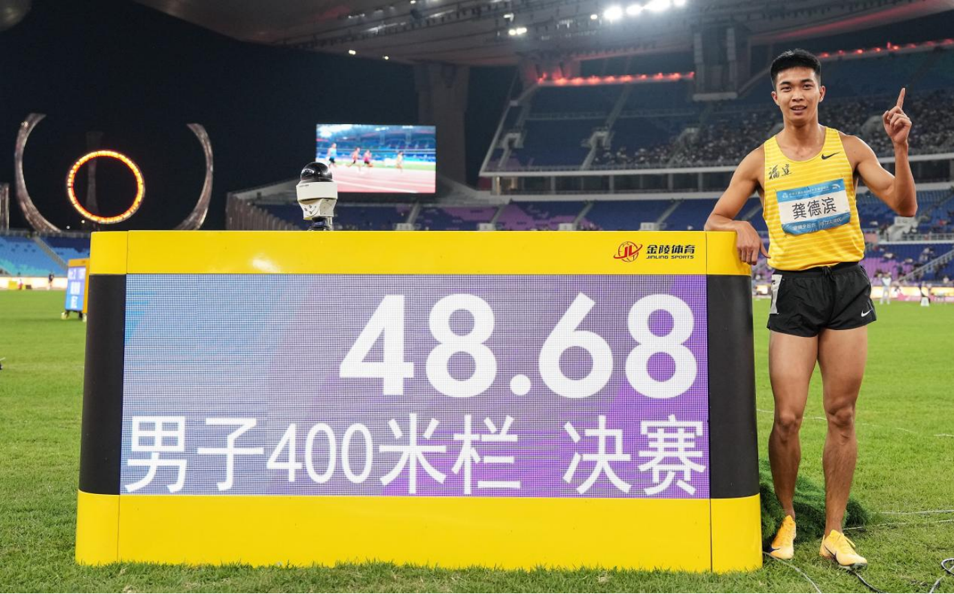 17日,在第十五届全运会男子400米栏决赛中,28岁龚德滨以48秒68夺得冠军,并打破该项目全国纪录。这是全运会田径赛场上诞生了第一项全国纪录。