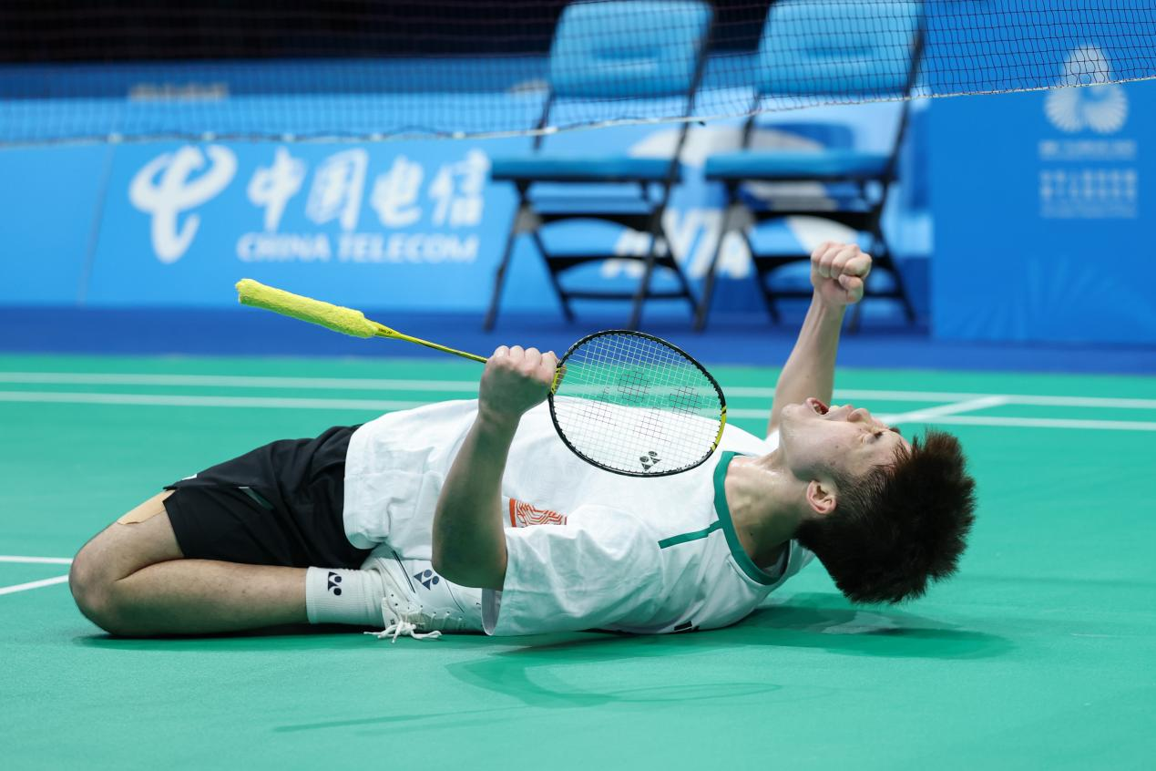 26岁的翁泓阳以21:10、21:18战胜湖北队朱轩辰,赢得了自己首枚全运会男单金牌。这是我省时隔12年之后,再次夺得全运会该项目金牌。翁泓阳也成为继王文教、汤仙虎、林丹之后,我省第四位全运会羽毛球男单冠军。