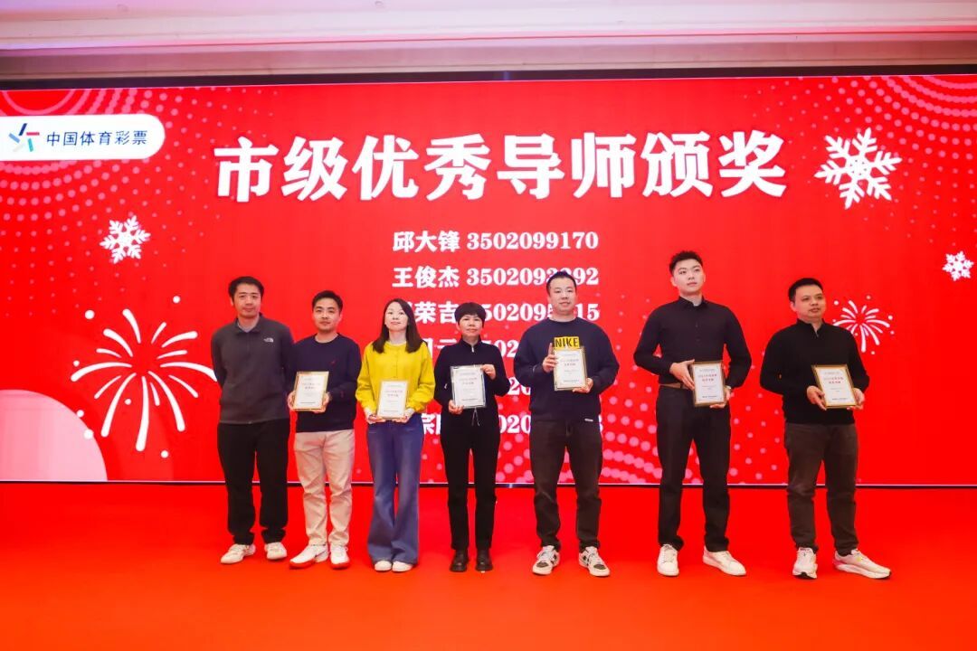表彰环节成为全场焦点。28家门店获评“最美实体店”,该荣誉依据省中心部署,从合规、服务、公益、业绩多维度综合评定,有代销者独揽三项荣誉脱颖而出,他们扎根一线守规范、优服务、践初心;6人获“市级优秀导师”称号,以专业教学赋能竞彩业务提质增效;10家销量领先门店获评“市级优秀网点”称号,凭合规经营与优质服务赢得市场广泛认可。