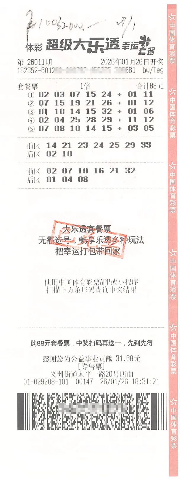 体彩大乐透第26011期