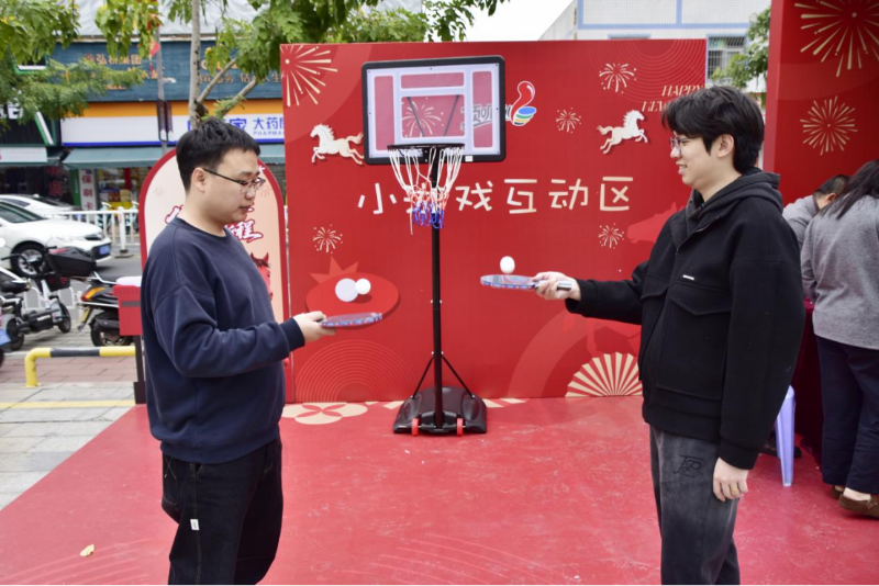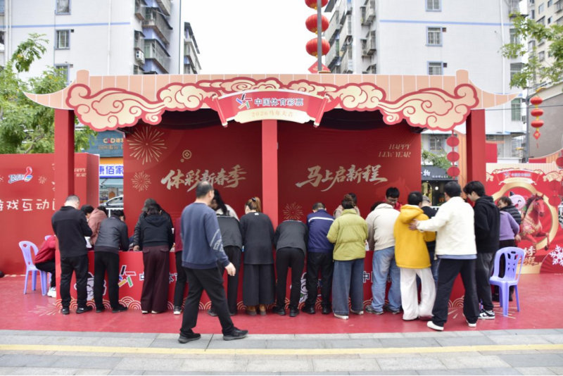 “趣味乒乓球”“幸运投篮”“体彩知识问答”等一个个趣味小游戏前,市民们排起长队参与。活动现场设置了新用户关注有礼环节。市民通过现场扫码,即可获赠一张10元面值的“马年大吉”主题即开型彩票。