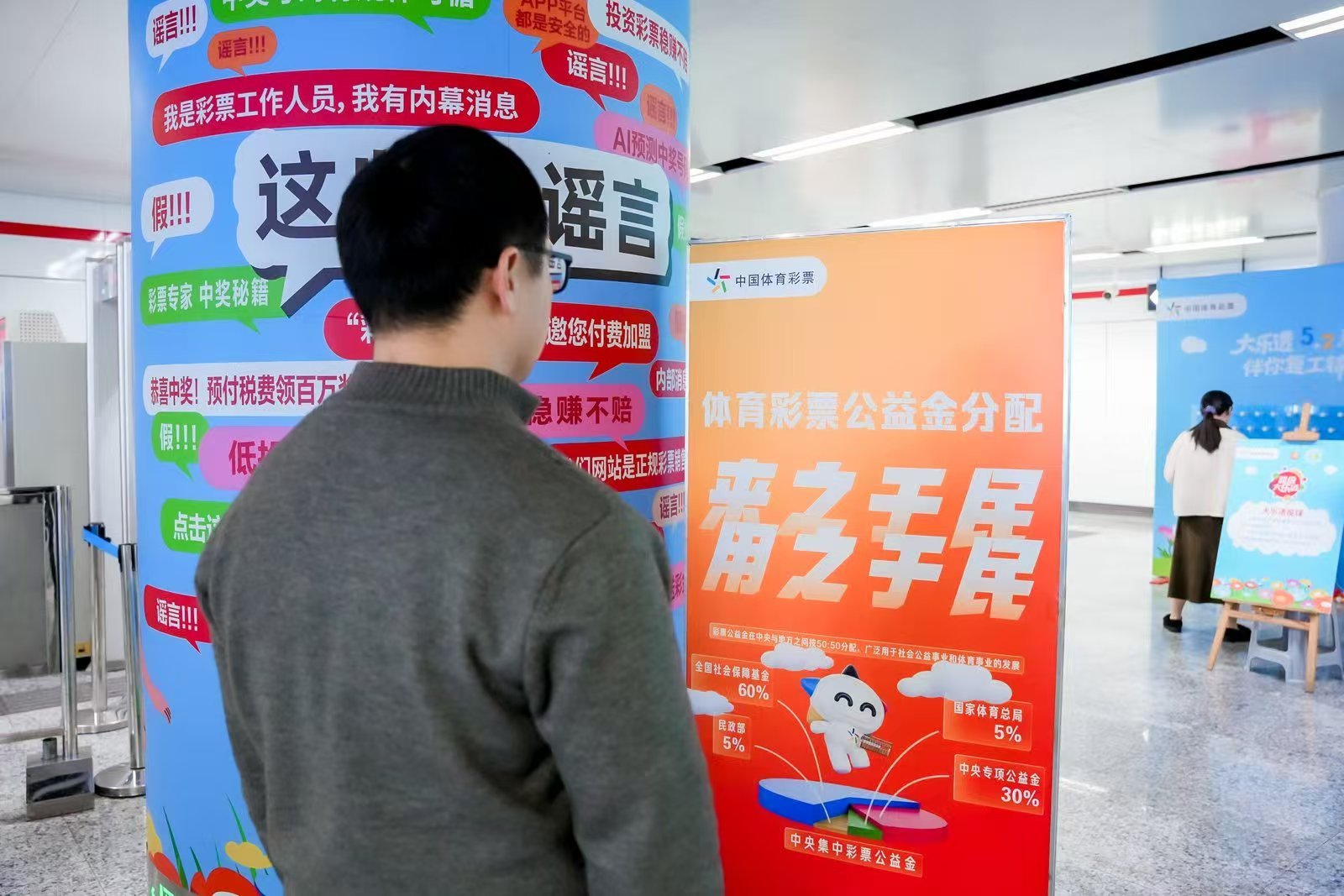 当天,东街口地铁站内一条精心设计的“品牌通道”格外引人注目。通道以“体彩复工 活力启程”为主视觉,巧妙融入体彩IP“乐小星”及复工主题元素,打造出错落有致的互动区与打卡墙面,将通勤之路装点成一条充满惊喜的“花路”。
