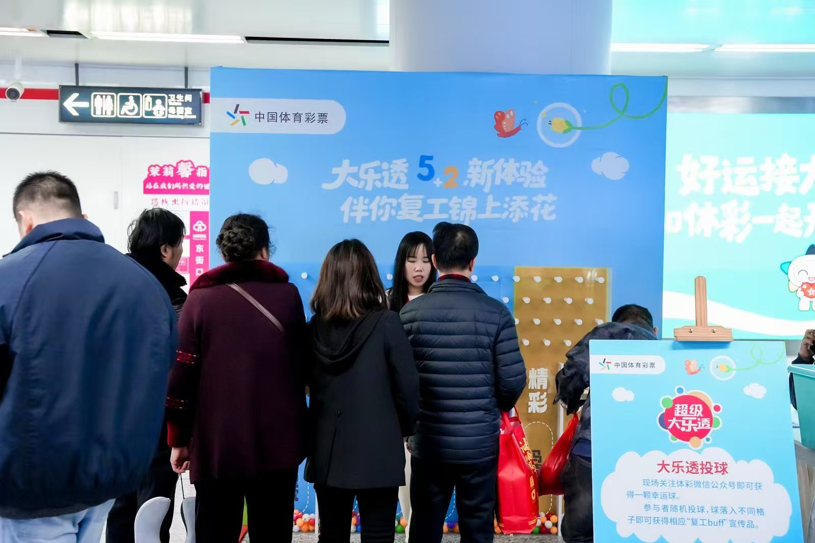 在大乐透投球互动墙前,参与者络绎不绝。只需扫码关注体彩微信公众号,即可获得一枚特制“幸运球”。人们瞄准墙面上印有“升职”“加薪”“顺遂”等祝福语的格子,或轻抛或投掷,当球稳稳落入格中的瞬间,充气U型枕、毛绒包挂等礼品便到手了。“这个好玩,就像把好运‘投’进新一年!”一位刚刚投中的年轻白领兴奋地展示着他的战利品。