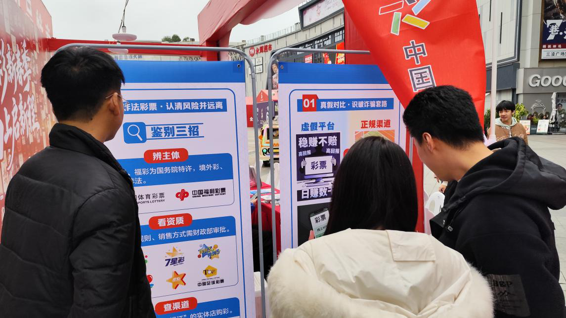 活动现场精心搭建的蓝白色调开放式警示教育区,成为反诈宣传的一大亮点。展板以 “非法彩票 认清风险并远离” 为核心,清晰列明 “辨主体、看资质、查渠道” 的非法彩票鉴别三招,醒目突出 “拒绝非法彩票” 的核心警示语,通过合法渠道购彩原则与虚假平台骗局的鲜明对比,犀利戳破非法彩票的伪装。市民纷纷驻足展板前阅读交流,不少人拿出手机拍照留存鉴别方法,沉浸式的学习体验让大家认清了非法彩票的潜在危害,这场接地气的 “防非反诈公开课”,将风险提示前置,让诈骗陷阱无所遁形,更带动市民主动成为反诈防非的传播者,凝聚起全民防范的强大合力。