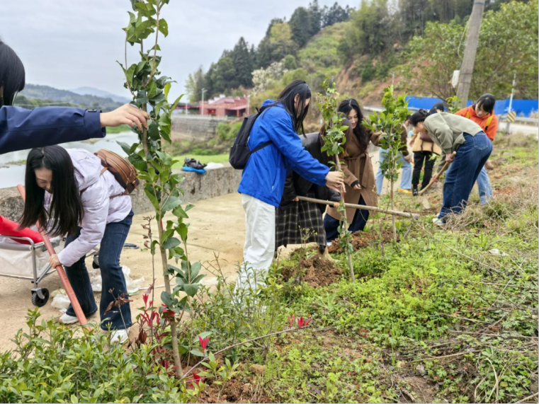 初春的户外仍带着些许寒意,活动现场却是一派热火朝天的劳动景象。抵达植树区域后,大家迅速投入劳动,挥锹铲土、扶苗填坑、提水浇灌,每一个环节都一丝不苟。在春风轻拂下,一株株新栽种的树苗迎风挺立,为这片土地增添了勃勃生机,也寄托了大家对绿色未来的美好期许。