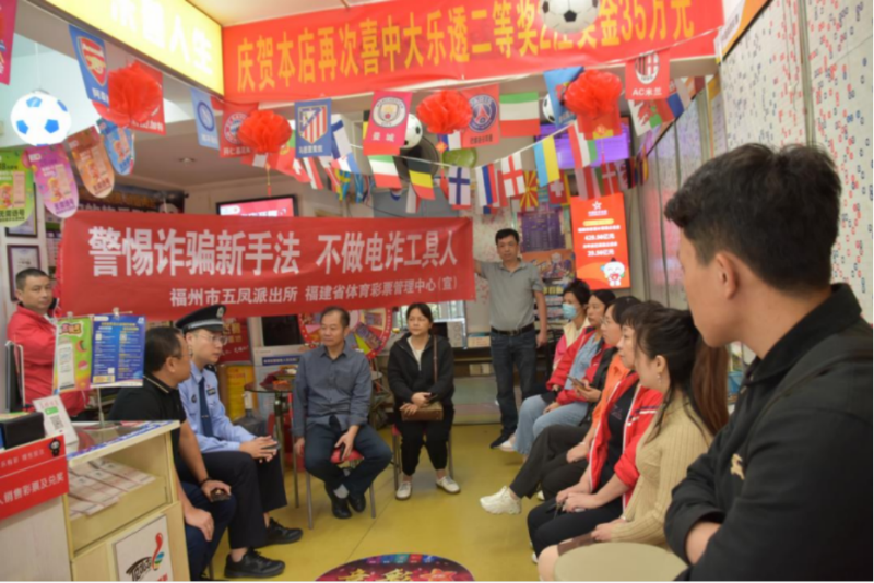 在福州,反诈宣传阵地不断延伸、形式更加走心。今年2月,省体彩中心在鼓楼区左海公园举办大型反诈宣传活动,现场设置“购彩无瘾”主题宣传专区,防沉迷研究小组成员、心理咨询师、法律顾问组成专业团队,为市民提供一对一咨询服务;今年3月,联合福州市公安局鼓楼分局五凤派出所、泰和泰(福州)律师事务所等,在台江区3501023282体彩实体店开展主题党日活动,民警结合真实案例拆解“网络私彩”“稳赚不赔”等诈骗套路,让反诈知识听得懂、记得住、用得上。