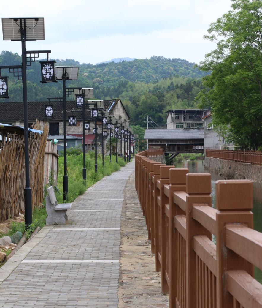 以前村里路黑,草丛里还有蛇。现在路亮了,一盏盏路灯立了起来,村民们饭后都爱去散步,热闹得很。